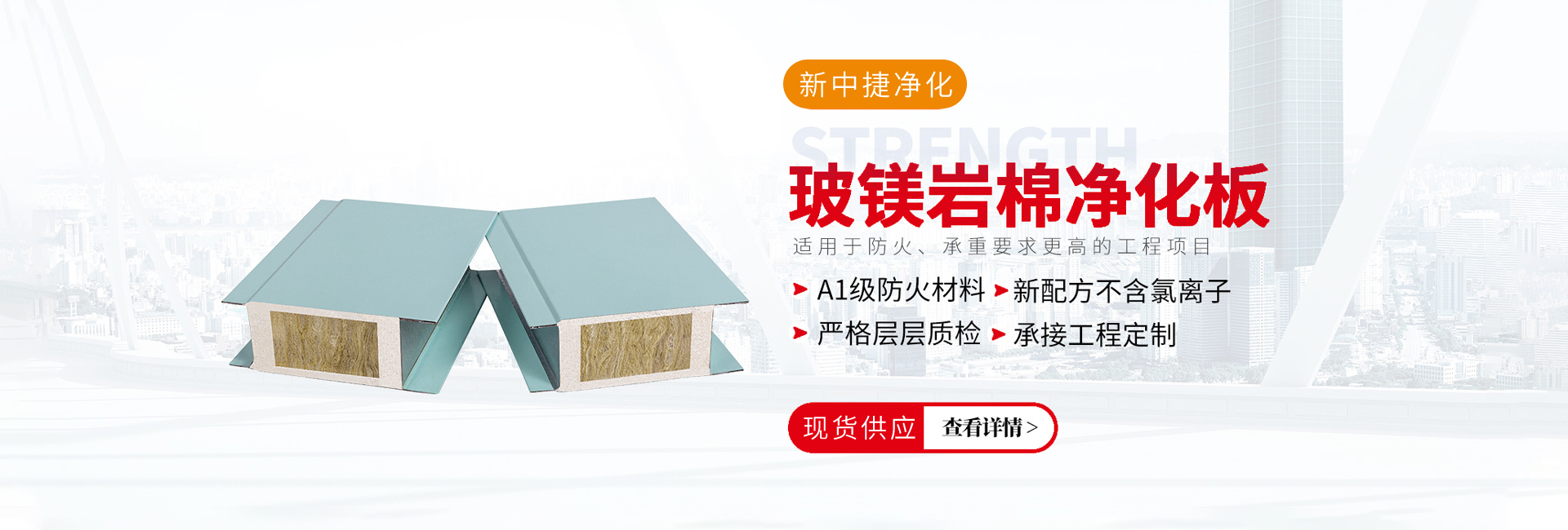 山西新中捷凈化工程有限公司是從事凈化工程的設計、開發、生產、安裝、經營于一體的凈化板生產廠家擁有生產以上產品的全套設備,是山西凈化行業服務提供商。在公司發展壯大過程中,我們始終為客戶提供好的產品和技術支持、健全的售后服務。公司從事各類凈化板、夾芯板研發、制造和銷售。我們擁有多種夾芯板、凈化板、彩鋼生產線成套設備,產品有各種型號的巖棉凈化板、手工凈化板、機制凈化板、紙蜂窩凈化板、泡沫凈化板、硫氧鎂凈化板、聚氨酯凈化板、彩鋼凈化板等,我們所生產的每一個產品均符合相關行業要求,每年定期將所生產產品進行質量測試,另公司內部也擁有獨立的...